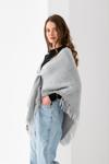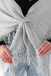 Simli püskülleri, şala modern ve göz alıcı bir görünüm kazandırır.