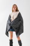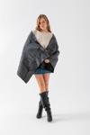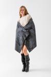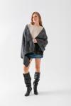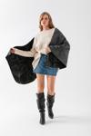 Wega Moda'nın şıklığı ve rahatlığı bir araya getiren omuz şalı, her iki yönüyle de kullanılabilen tasarımıyla dikkat çeker.
