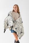 Wega Moda Yaprak Desenli Omuz Şalı, Çift Yönlü Kulanıma Uygun Şık Rahat Omuz Şalı, Triko Omuz Şalı, Omuz Şalı