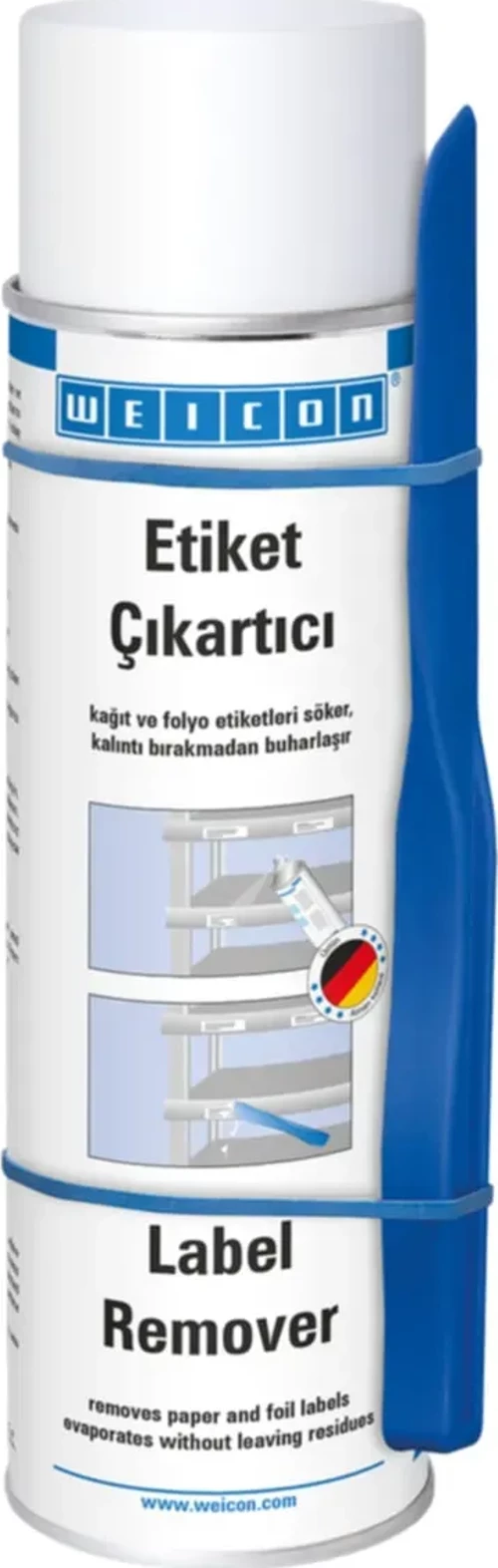 WEICON Etiket Çıkartıcı akrilat ve kauçuk bazlı basınca hassas yapıştırıcıların etiketlerini ve kalıntılarını hızlı ve kolay bir şekilde söker. Etiket Çıkartıcı cam, metal, ahşap, folyo ve plastik yüzeyler için uygundur. WEICON Etiket Çıkartıcı etiketleri, fiyat etiketlerini (ör - yanlış etiketler), adres ve ürün etiketleri, tanıtım etiketleri ve etiket kalıntılarını kolay ve güvenli bir şekilde temizler. Aynı zamanda araba ön camındaki yol harcı etiket kalıntılarını, süsler ve folyo kalıntılarını da temizlemektedi.