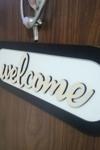 Beyaz zemin 3 mm MDF ve siyah çerçeveli 3mm MDF olup, üzerindeki Welcome yazısı 4 mm Kontraplak Ahşaptan imal edilmiştir.