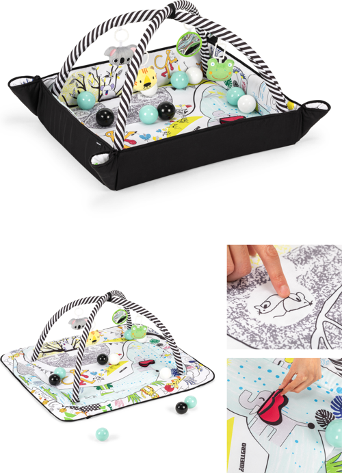 Bebeğinizi eğlendirmek ve yetenek gelişimlerini desteklemek için birçok fiziksel aktivite içeren renkli jimnastik merkezidir. Kenarları katlanarak güvenli bir oyun alanı oluşturulabilir.