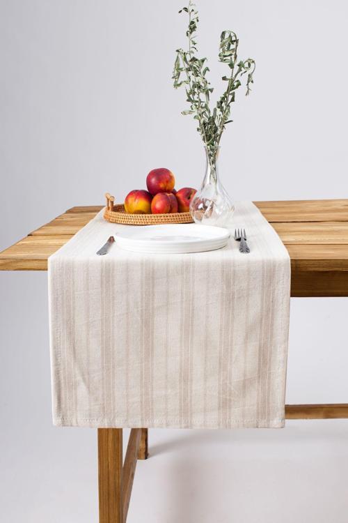 Wellstil Bohem | Kahverengi Çizgili Keten Runner 40 X 150 Cm