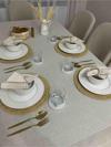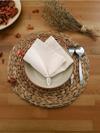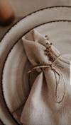 Kumaş: Yıkanmış dokuma kumaş, %60 Keten %40 Pamuk. Polyester, Polietilen içermez. Dikim: Kenarları çift kat ince dikişli kumaş. El yapımı yerli üretimdir. Bakım Talimatları: 30°C kısa programda yıkama