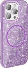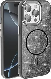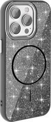 Wenixs İphone 15 Pro Max Kılıf Magsafe Şarj Özellikli Parlayan Simli Zore Okso Kapak - Siyah