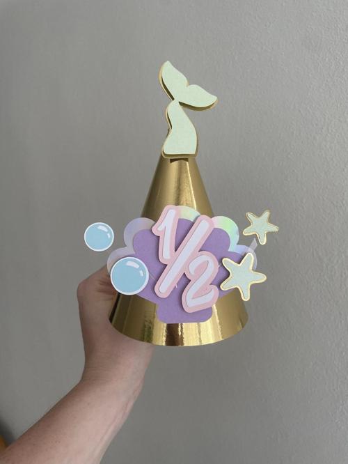 Wenuca Party Shop Denizkızı Konsept Parti Şapkası Yarım Yaş Kutlama Karton Şapka, 1 Yaş Doğum Günü Şapkası