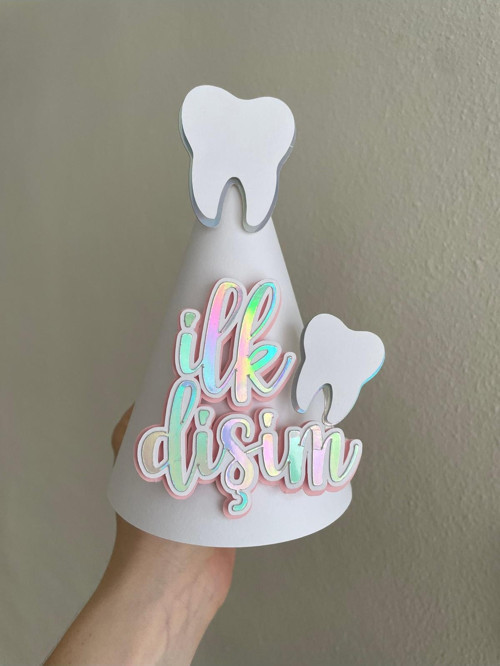 Wenuca Party Shop'un sunduğu bu sevimli karton parti şapkası, bebeğinizin "ilk dişim" kutlamaları için mükemmel bir seçimdir.