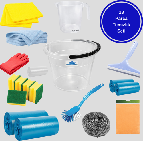 Wespa Mega Temizlik Kovası Seti – 13 Parça | Bez, Sünger, Eldiven, Çöp Torbası