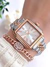 WESSE Takvimli Kadran Çelik Kordon 3Atm Suya Dayanıklı Kadın Kol Saati+Bileklik