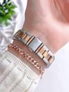 WESSE Takvimli Kadran Çelik Kordon 5 Atm Suya Dayanıklı Kadın Kol Saati+Bileklik