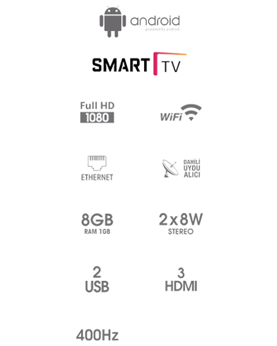 - FULL HD LED TV, 1920x1080 Çözünürlük