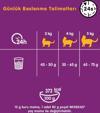Kullanım Önerileri – Beslenme Talimatı: Ödül mamalarından gelen kalorileri hesaba katın. Besleme miktarları yalnızca kılavuz niteliğindedir. Mama miktarını kedinizin yaşına, büyüklüğüne ve aktivite seviyesine göre ayarlayın. Gün içerisinde yemeleri için porsiyonlara bölün. Lütfen diyetini değiştirirken mamaya yavaş yavaş alıştırın. Daha fazla bilgi için lütfen web sitemizi ziyaret ediniz. Yanında mutlaka taze içme suyu bulundurunuz. Serin ve kuru ortamda kapalı olarak muhafaza ediniz. En uygun ambalaj üzerinde belirtilen tarihten önce kullanılmalıdır, parti numarası, fabrika tanımlama numarası: paketin arkasına bakınız. Boğulmaya engel olmak için; torbaları bebeklerden, çocuklardan ve evcil hayvanlardan uzak tutunuz.