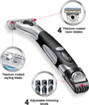 - Tıraş bıçağının arka tarafında bulunan titanyum kaplı styling bıçak ile ufak saç, favori, bıyık ve sakal gibi zor bölgelerde düzeltme yapmanızı sağlar.