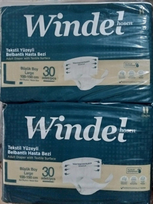 WİNDELHOSEN Tekstil Yüzeyli Belbantlı Yetişkin Hasta Bezi Large 2x30'lu WİNDELHOSEN Tekstil Yüzeyli Belbantlı Hasta Bezi