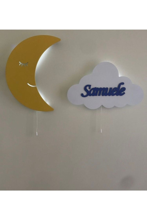 Renk seçenekleri vardır İsimli Gece Lambası Çocuk Odası Bebek Odası Dekoratif Led Aydınlatma 40x20 cm Bulut İsimli 30 cm Ay Ledli 9v kare pil ile çalışır.