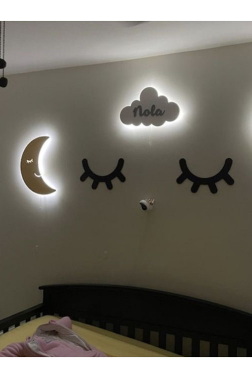 Windly Ahşap Atölyesi İsimli Bulut Ay Kirpik Ahşap Led'Li Çocuk Odası Dekorasyonu - Eğlenceli Ve Güvenli Aydınlatma