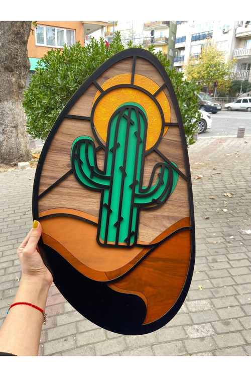 - El yapımı kaktüs katmanlı ahşap tablo, her biri özenle seçilmiş doğal ahşap parçalarından oluşan benzersiz bir duvar dekorudur
