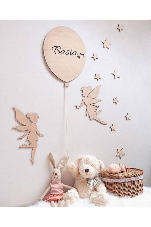 Windly Concept Özelleştirilebilir Tinkerbell Ve Balon İsimli Ahşap Çocuk Odası Dekoru - Sevimli Ve Eğlenceli 30 Cm