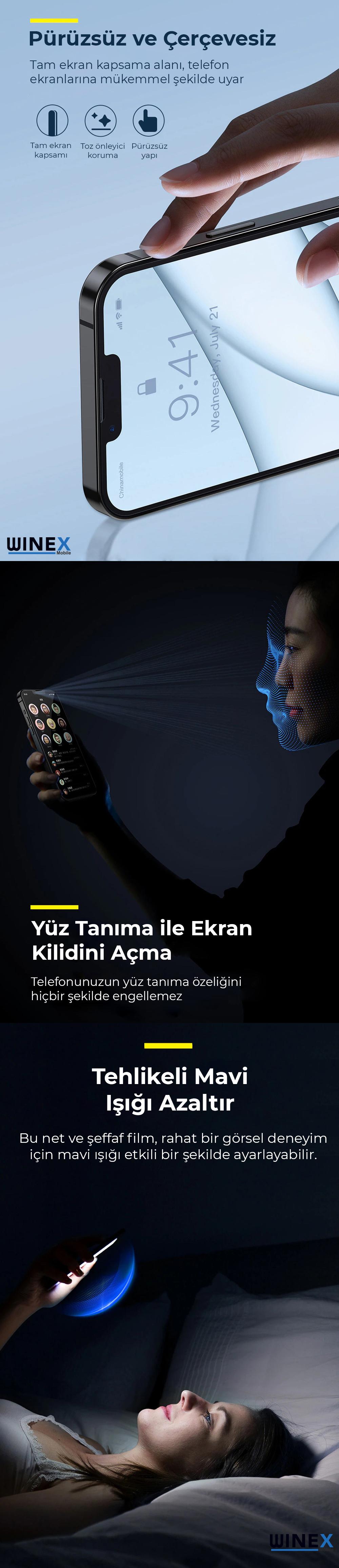 Winex İphone 15 İle Uyumlu Ön Darbe Emici HD Ekran Koruyucu Kaplama