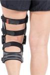 W518 Fonksiyonel Diz Breysi Anatomik diz şekline göre tasarlanmış hafif alüminyum malzemeden üretilmiş, fleksiyon ve ekstansiyon limitasyonu sağlayan derece ayarlı fonksiyonel rijit breystir. Fleksiyon(0°, 15°, 30°, 60°, 90°, 120°) ve ekstansiyon (0°, 15°, 30°) derece ayarı yapılabilir. 4 nokta prensibiyle en elverişli stabilizasyonu sağlar. Öne ve arkaya tibial yer değiştirmeyi önler, dizin hiperekstansiyonunu engeller. Endikasyonları Kollateral bağ yırtılmalarına baglı ınstabılteler