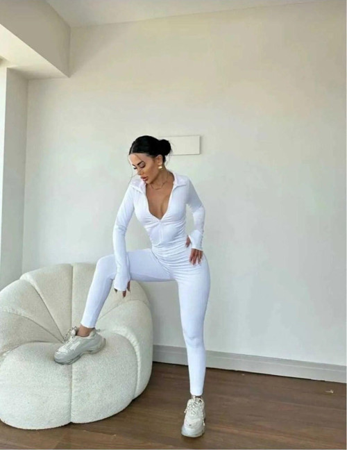 Winmoda34 Kadın Dalgıç Polarlı Likralı Spor Günlük Tulum Önden Fermuar Detaylı Uzun Kol Parmak Geçmeli Model