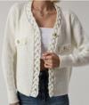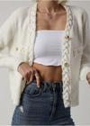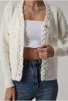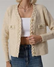 Zarif ekru rengi ve gold düğmelerle süslenmiş, her türlü kıyafetle kolayca uyum sağlayacak şık tasarım.