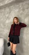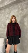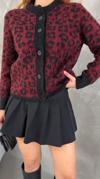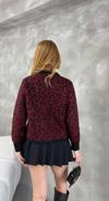 - Leopar desenli tasarımıyla dikkat çeken bordo hırka, şık ve modern bir görünüm sunar.