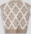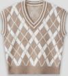 Winter Club Kadın V Yaka Fitilli Kenarlı Kolsuz Baklava Desen % 100 Ipek Şardonlu 2 Renk Süveter