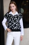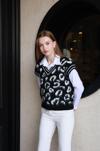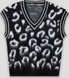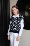Winter Club Kadın V Yaka Fitilli Kenarlı Kolsuzleopar Desen % 100 Ipek Şardonlu 2 Renk Süveter