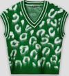 Winter Club Kadın V Yaka Fitilli Kenarlı Kolsuzleopar Desen % 100 Ipek Şardonlu 2 Renk Süveter