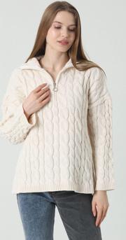 Bu zarif saç örgü desenli kadın kazak, her gardırobun vazgeçilmez parçası olacak! Uzun kolları ve rahat kesimi ile tüm gün konforlu bir kullanım sunar