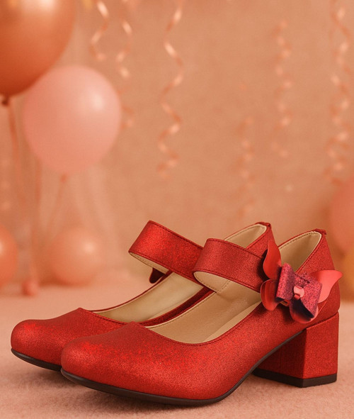 Hapshoe Kids Winx Kırmızı Işıltılı Kelebekli Kız Çocuk Topuklu Ayakkabı