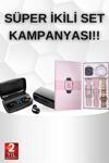 AKILLI SAATYeni Nesil Mini Kadın Akıllı Saat, şıklığı ve fonksiyonelliği bir araya getiren tasarımıyla kadınlar için ideal bir seçenek sunuyor. Almanya üretimi ultra dayanıklı model, özel wireless şarj özellikleriyle öne çıkıyor ve Türkçe menüsü sayesinde kullanıcı dostudur. Kutu içeriğinde, mini akıllı saat, 3 farklı kordon, hediye bileklik, wireless şarj kablosu ve kullanım kılavuzu bulunmaktadır. Şık pembe kutusu, hediye olarak tercih edilmesini sağlayan bir özellik taşır. 41 mm kavisli oval kenarlı yeni tasarımı ve 1,70 inç AMOLED ekranı ile yüksek çözünürlükte HD görüntü sağlar.Saat, nabız ölçer, uyku izleyici, kan basıncı, tansiyon, EKG ve vücut sıcaklığı ölçer gibi sağlık izleme özellikleriyle sağlığınızı takip etmenizi sağlar. 117 farklı spor modu ve adım, kalori, kalp ritmi ölçme gibi özellikler ile aktivite takibini oldukça detaylı yapabilirsiniz. Ayrıca akıllı hatırlatıcılar sayesinde su içme ve hareketsizlik gibi hatırlatmalar alabilir, tüm bildirimleri ve mesajları anında saatinizde görebilirsiniz.Bluetooth bağlantısı ile yüksek kaliteli müzik dinleyebilir ve uzaktan fotoğraf çekme özelliği ile fotoğraflarınızı kolayca çekebilirsiniz. Suya dayanıklı yapısı, günlük kullanımda sıklıkla tercih edilmesini sağlar; ancak deniz ve havuz gibi basınçlı suya karşı su geçirmez.Saatin sunduğu diğer özellikler arasında Türkçe ve çoklu dil desteği, saatimi bul, telefonumu bul, alarm, kronometre, hava durumu, hesap makinesi gibi fonksiyonlar bulunur. Kordonu değiştirilebilir, bu sayede kişisel tercihlere göre tasarımı özelleştirilebilir. 24 ay garanti süresi ile kullanıcılarına güvenli bir deneyim sunar.KULAKLIKA10s TWS Kulaklık, Bluetooth 5.0 çip teknolojisiyle yüksek kaliteli ses ve stabil bağlantı sunar. Gerçek kablosuz stereo deneyimi sağlayan bu kulaklık, 40mAh pil kapasitesine sahip her iki kulaklıkla yaklaşık 4 saat müzik dinleme ve 4 saat arama süresi sunar. Ayrıca, şarj kutusu 1800mAh kapasiteye sahip olup kulaklıkları yaklaşık 22 kez şarj edebilir ve aynı anda cep telefonu şarjını destekler.Kulaklık, Bluetooth 5.0 ile otomatik eşleştirme özelliğine sahip olup, dokunmatik kontrollerle müzik oynatma/duraklatma, arama yanıtlama ve kontrol işlemleri yapılabilir. Cihazlar arasında yaygın uyum sağlayan A10s, Windows, iOS ve Android sistemleriyle tam uyumludur. Şarj süresi yaklaşık 1.5 saat olan kulaklık, 120 saate kadar bekleme süresi sunar.Dijital ekranı sayesinde şarj durumu rahatça takip edilebilir. Kulaklıklar stereo kanal modunda çalışarak müzik ve arama deneyiminizi optimize eder, Bluetooth mesafesi ise yaklaşık 10 metredir. Paket içeriğinde kulaklık, şarj kutusu, şarj kablosu ve yedek kulaklık uçları bulunur.