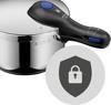 Basınç göstergesindeki yeni pim sayesinde daha fazla güvenlik; bu pişirme sırasında tırmanmanız gereken ilk şeydir, tencerenin zaten basınç altında olduğunu ve kapağın tamamen kilitlendiğini gösterir; ayrıca tencereyi basınçlandığında en son aşağı indir; tencerenin içine entegre ölçüm işaretleri vardır