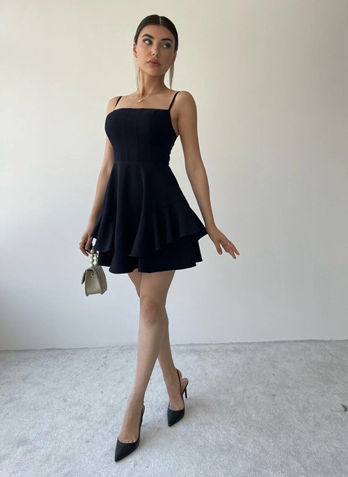 Kadın Eteği Kat Detaylı Ayarlanabilir İnce Askılı Siyah Elbise 102 Ayarlanabilir ince askılı eteği kat detaylı kırmızı abiye elbise & kırmızı mezuniyet elbisesi 102 Etc-102 Esnek değildir! Krep kumaştan üretilmiştir.