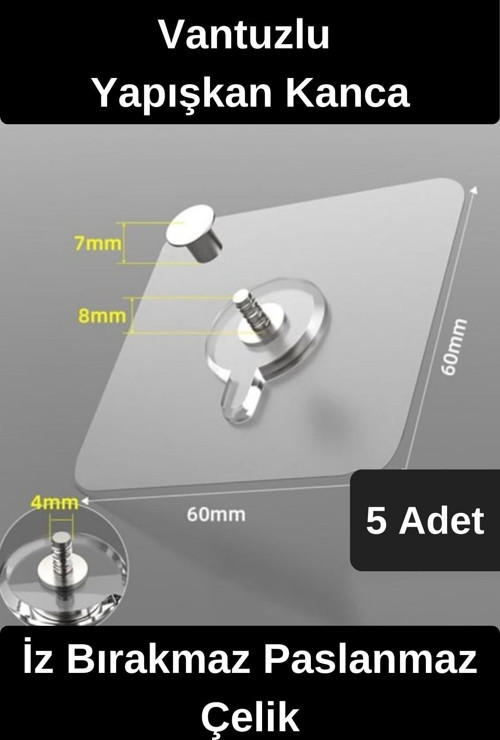 Wonara Dayanıklı Yapışkan Kanca İz Bırakmaz Süper Güçlü Vantuzlu Askı Cam Fayans Seramik Mermer 5 Adet