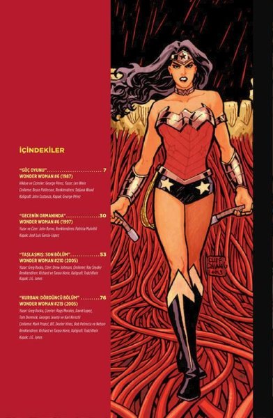 Greg Rucka, George Pérez, John Byrne, Brian Azzarello, Cliff Chiang ve Gail Simone gibi çizgi romanın en önde gelen yeteneklerinin yarattığı bu hikayelerde İnanılmaz Amazon, gücünü ve kılıcını sonuna kadar kullanarak Tanrıları, canavarları ve hatta zihinleri kontrol eden hainlerin etkisindeki dostlarını devirmek zorunda.