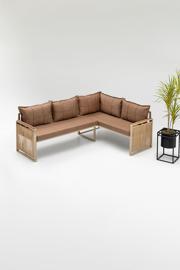 - Renk kombinasyonuyla şık ve modern bir görünüm sunan Wood House Mina köşe takımı, balkon, bahçe veya mutfak gibi farklı alanlarda rahatlıkla kullanılabilir.