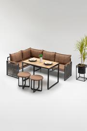 - Modern tasarımıyla dikkat çeken Wood House Motto köşe takımı, balkon, bahçe veya mutfak gibi farklı alanlarda şıklığı ve konforu bir arada sunar.