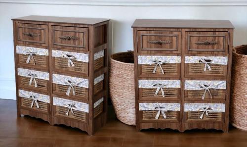 WOODLUCK Ahşap 4 Çekmeceli Hasır Görünümlü Sebzelik