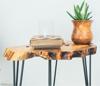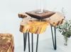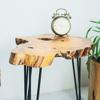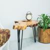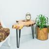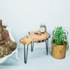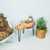 Modern tasarımıyla evinizin dekorasyonuna şıklık katan zeytin ağacı doğal kesit yan sehpa, geometrik şekliyle mekanınıza estetik bir dokunuş ekler