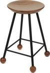 Wood Stone Art Tabure Sandalye 55 Cm Yuvarlak Oturma Yeri Bar Taburesi Ahşap Demir Ayaklı Ahşap Topuzlu Modern