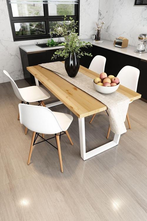 YEMEK MASASI TAKIMIMIZ 1 ADET MASA VE 4 ADET SANDALYEDEN OLUŞMAKTADIR. Masamız 1.Sınıf fırınlanmış masif çam ağacından üretilmiştir. Sağlığınız için su bazlı ahşap koruyucu uygulanmıştır. Masanın metal ayaklarında 30x50 mm ölçülerinde ve 1,5 mm kalınlığında profil kullanılmıştır. Masanın metal ayaklarına statik fırın boya uygulanmıştır. Sandalyelerimizin üst kısmı ortopedik COPP glass fiber ve ayakları da doğal gürgen ağacıdır. Masamızın ve Sandalyelerimizin ayakları demonte bir şekilde gönderilmektedir. Masamızın vidalama yerleri hazırdır, ayakları ağaç tablaya vidalayarak kullanmaya başlayabilirsiniz. Sandalyemizin kurulum Kılavuzu kutunuzun içerisindedir. Masa: