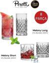 Meşrubatlarınızı ve suyunuzu şık bir şekilde sunmak için ideal, 4 adet meşrubat bardağı ve 4 adet su bardağından oluşan 8 parçalık set