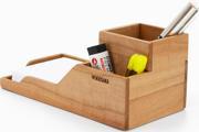 Woodsaka ProKit Çok Amaçlı Organizer - Bölümlü Kalemlik Not Kağıdı Kutusu Ataçlık Bir Arada - Model 6 - Kiraz Ağacından