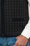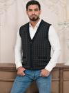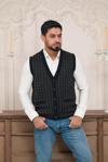 -Woolen World Regular Fit Ön Cepli Desenli Kolsuz Erkek Triko Yelek
