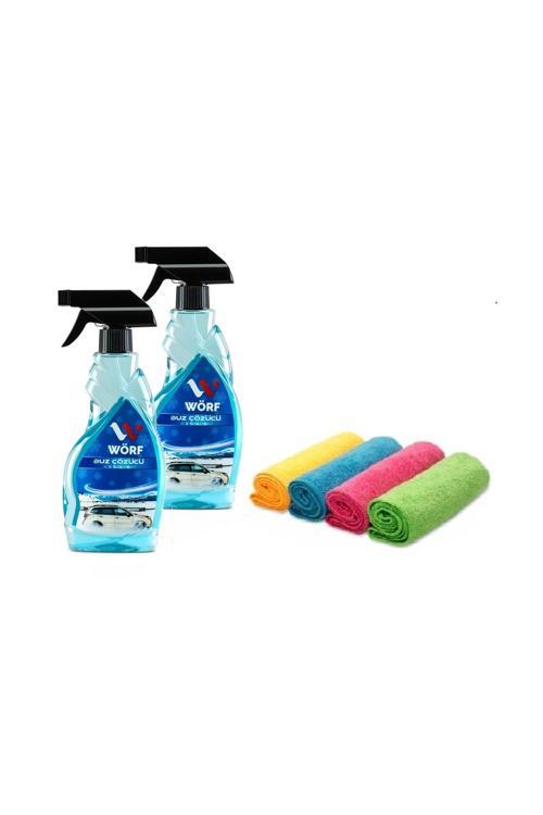 Wörf 2 Adet Buz Çözücü Sprey 500 Ml. & 30*30 Cm 4'Lü Temizlik Bezi