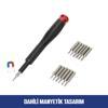 • Geliştirilmiş dayanıklılık, paslanma direnci ve korozyon önleyici özellik için ısıl işlem görmüş CR-V çelikten yapılmış 24 Parça hassas bits tornavida uçları, 1 adet elektronikçi cımbız seti, 3 parça Sputger seti, Sim kart açma pimi ve vantuz dan oluşan settir.
