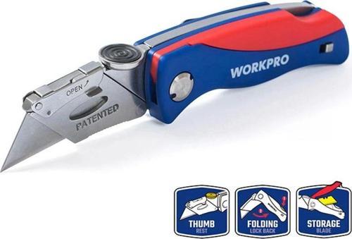 • WORKPRO WP211006 Ağır Hizmet Paslanmaz Çelik Gövde Katlanır Rötuş Maket Bıçağı + 6 Adet Yedek Bıçak
