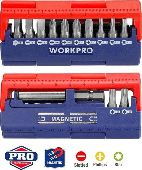 • WORKPRO WP221062 13 Parça Manyetik CR-V Vidalama Bits Uç Seti